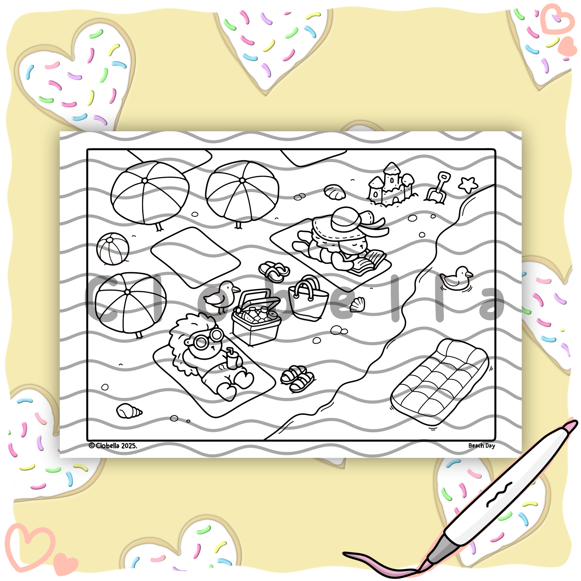 Digital Download - Hedgie & Honey Beach Day Colouring page