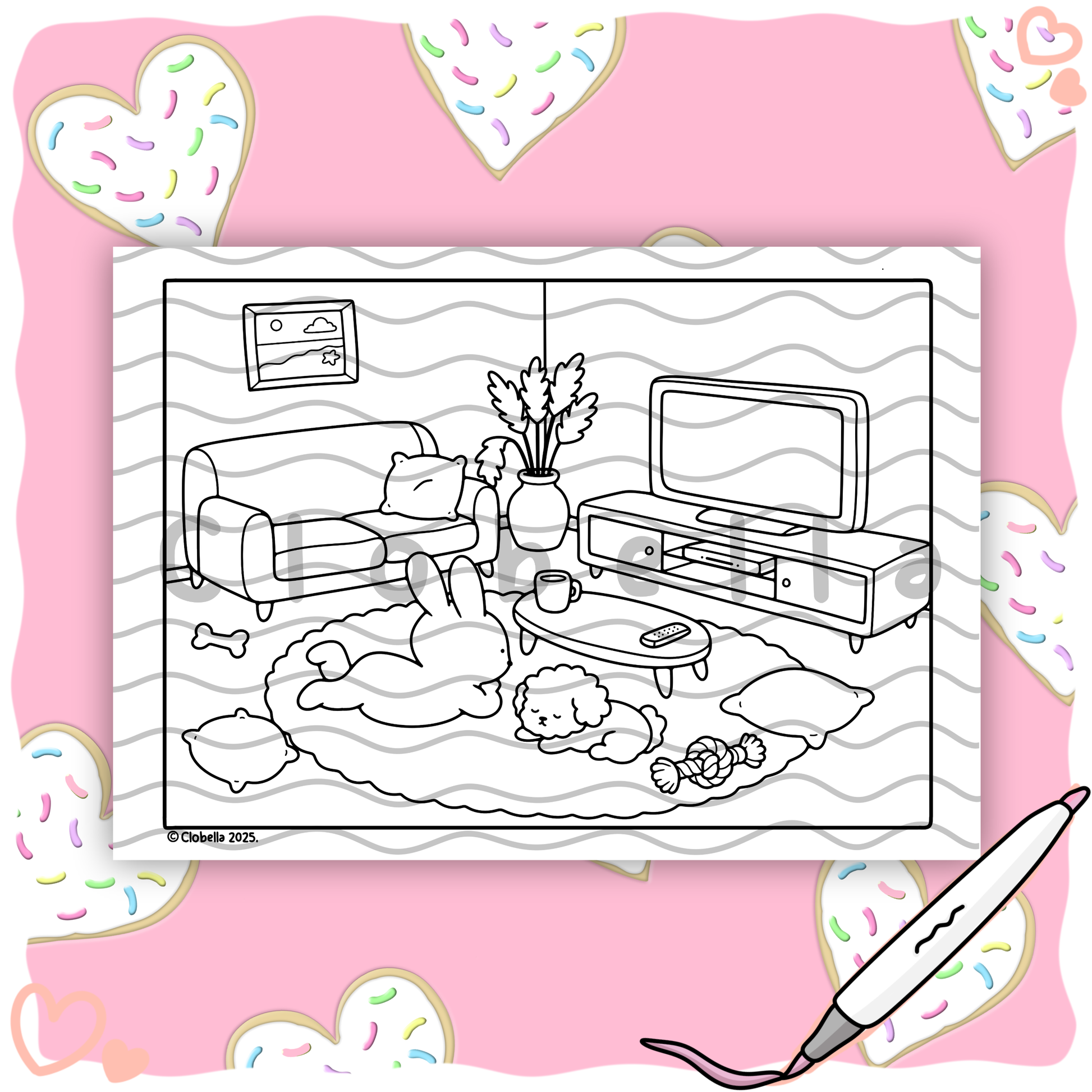 Digital Download - Lottie’s Evening By the TV Colouring Page